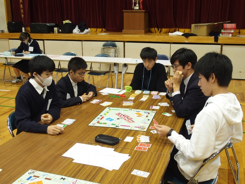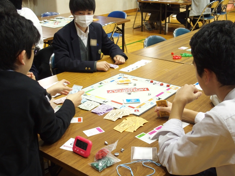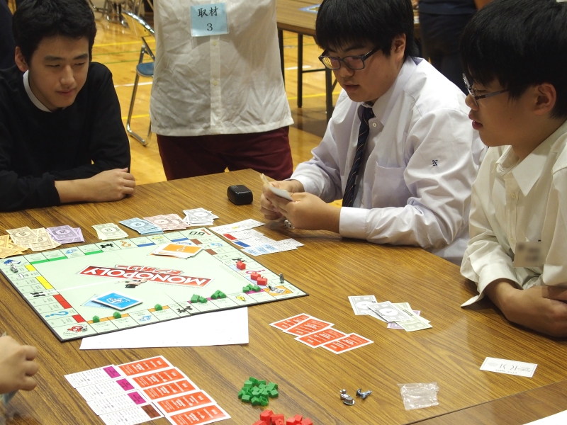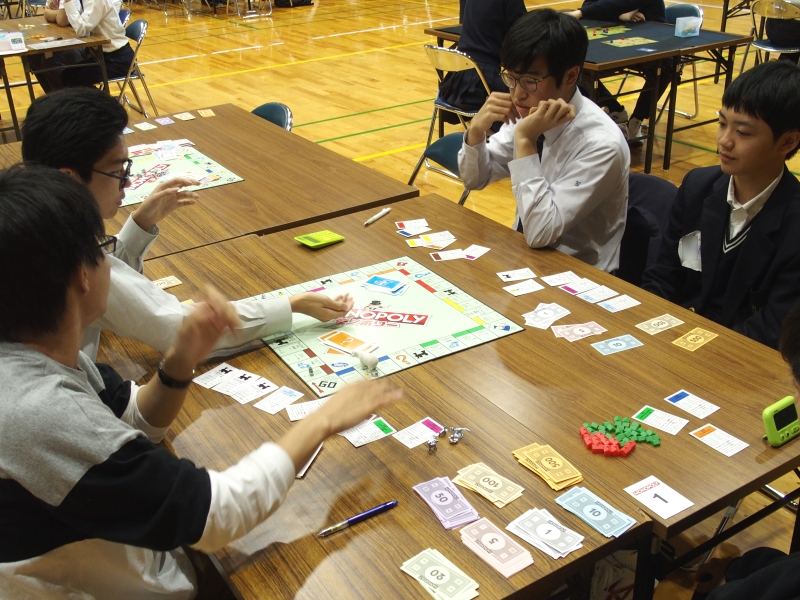 その頃、モノポリーも終盤戦。収入が増えてお札のやりとりが盛んになっています。果たして勝利するのはどの学校なのでしょうか。