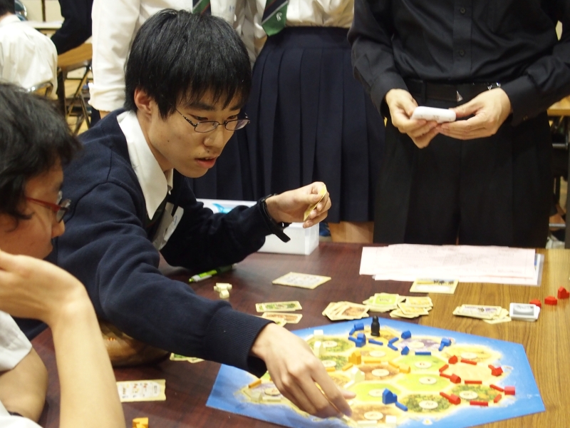同じくカタンもぎりぎりの攻防が続きます。誰が勝ち抜くのか、見学している生徒たちも多数いて視線が注がれます。