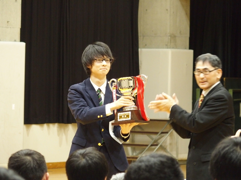 草場先生より開会宣言があり、昨年度優勝の中央大学杉並高等学校Aチームより優勝杯が返還されます。