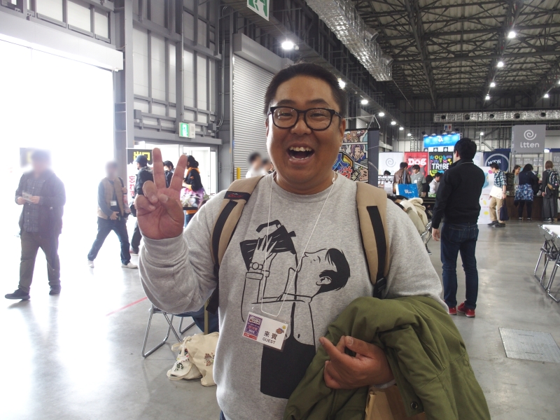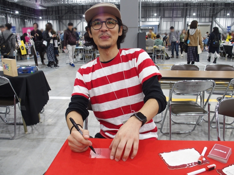 芸人のいけだてつやさん。今日はゲームマーケット大賞表彰式の司会をやっていただきます。いつも笑顔で応えてくれる優しい方です。