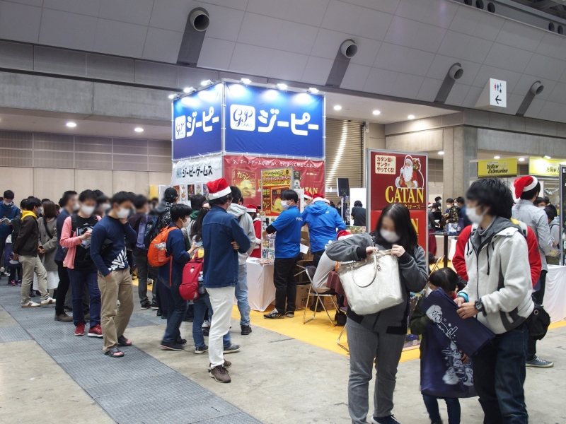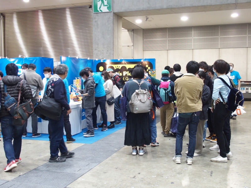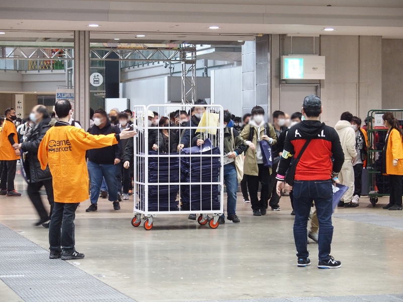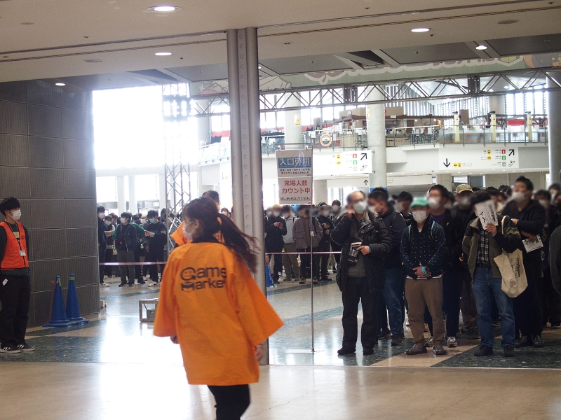 ゲームマーケットが2日間開催になってから、土曜日に当たる1日目のほうが圧倒的に来場者が多いという歴史があります。最近は新型コロナウィルス感染症の影響で来場者も少なめだったので、こんなにたくさんの人たちが並んでいると思わなく驚きました。
