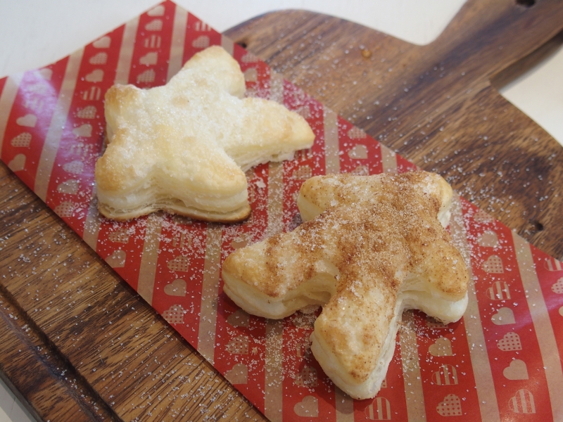 ボードゲーマーならその形ですぐわかる『ミーパイ』は、注文がはいってから焼き上げるという、焼きたてほかほかのさっくりパイです。味は2種類あり、せっかくなので1つずつ焼いていただきました。頭を使った後の甘さとサクサク感がたまらないのです。