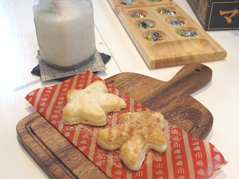 ボードゲームカフェへ行ってもボードゲームを遊ばないことで有名(?)な私ですが、古典と呼ばれるマンカラをじっくり遊ぶのはこれが初めて。ところが夢中になりすぎて、次第に小腹が空いてきます。