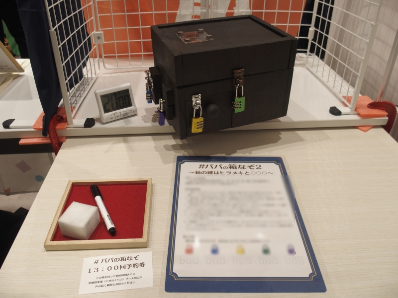私が目指すのはパパの箱なぞです。ゲームマーケットでは大人気でなかなか遊ぶチャンスがありません。シュピールフェストでは遊ぶことが出来るので、正直に言えば今回の目的の半分以上はこれでした。