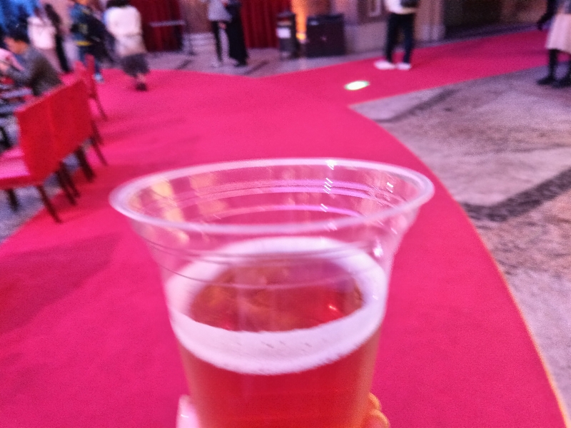 出る時に配られるドリンクチケットで水分を補給。スパークリングのお茶でした。