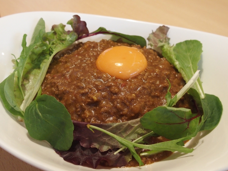 運ばれてきたのは卵黄が輝くキーマカレー。早速いただきます。
