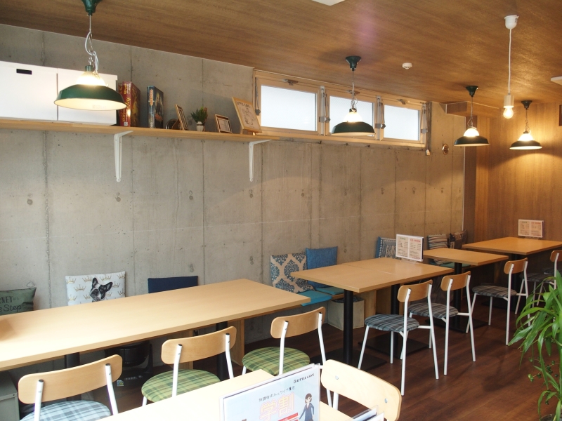 大きな窓から差し込む自然光が、木製のテーブルたちと相まって和やかな空間をつくり出しています。