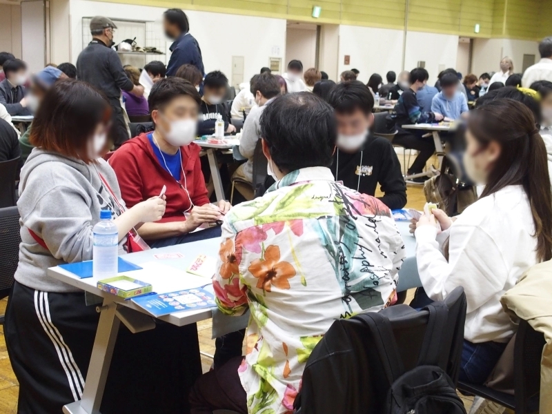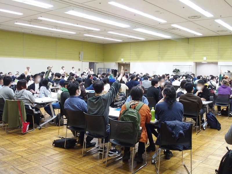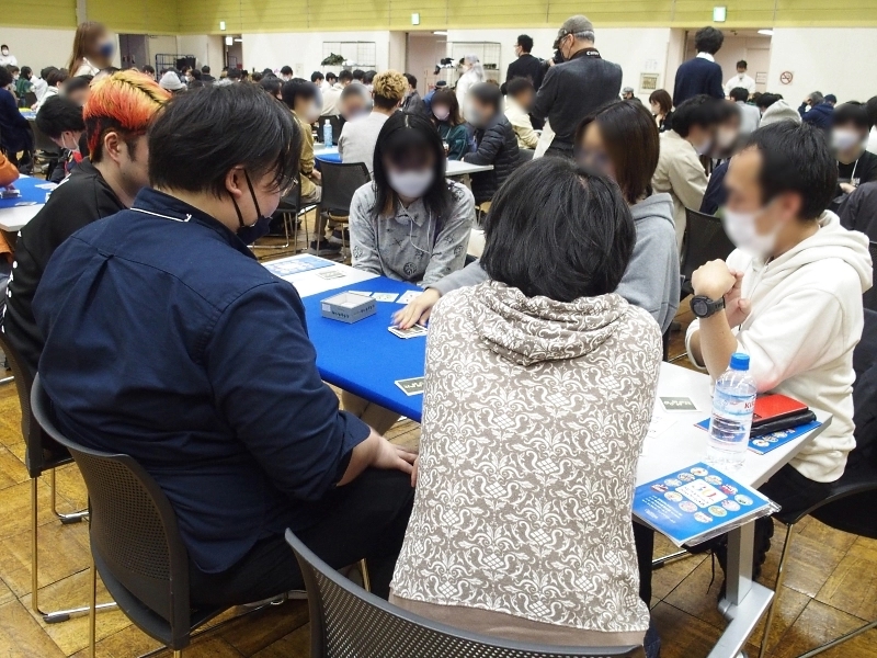 広い会場でもこれだけの人数がいると圧巻です。全員が自チーム勝利のために、真剣にゲームに向き合っています。