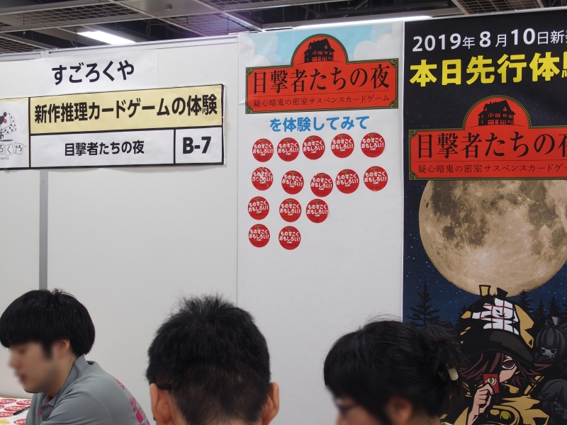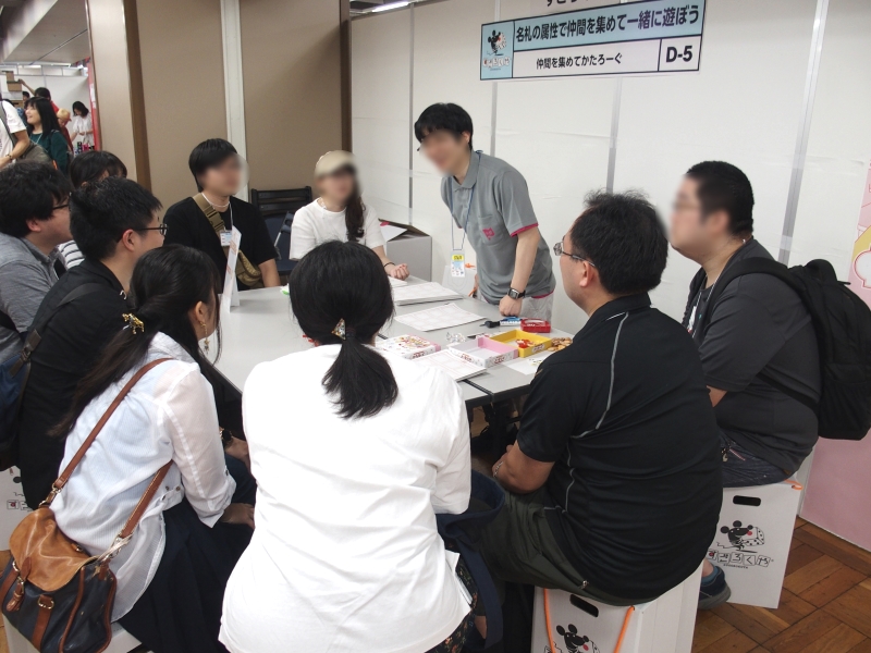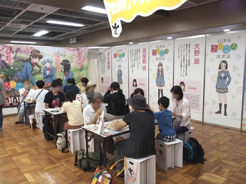 アニメ版の大きなパネルに囲まれ、実際に登場するボードゲームをその場で遊ぶことができるようになっていて、常に賑わっていました。