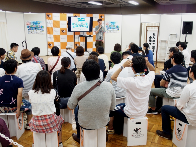 代わりにすごろくや特製『どこでもスツール』が大活躍。入場の時に1人に1つ渡される、簡単に展開と折りたたみが出来るイスです。