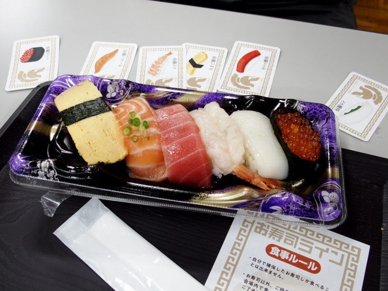 6種類のネタを取り合うお寿司ラインは、時間制限あり・カード枚数調整ありの特別ルール導入で2人対戦。