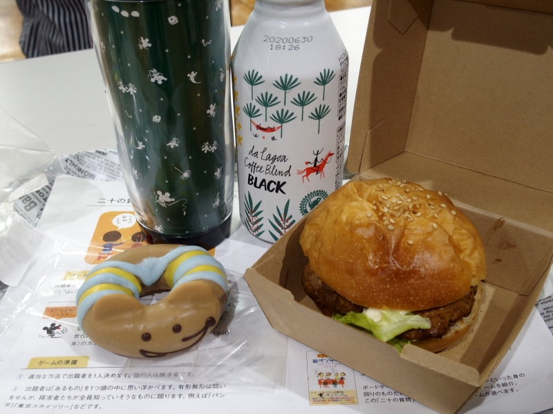 こちらではドーナツ店とのコラボが実現し、ボードゲームのキャラクターをモチーフにしたオリジナルドーナツがドリンクとセットで販売されていました。さらに自家製デミグラスソースのハンバーガーも。