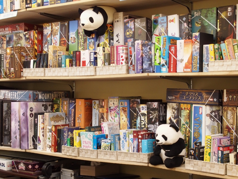上野といえば有名なのは上野動物園のパンダ。こちらのお店では、ボードゲームと一緒にパンダがお客さんを出迎え、そして遊んでいる姿を見つめています。