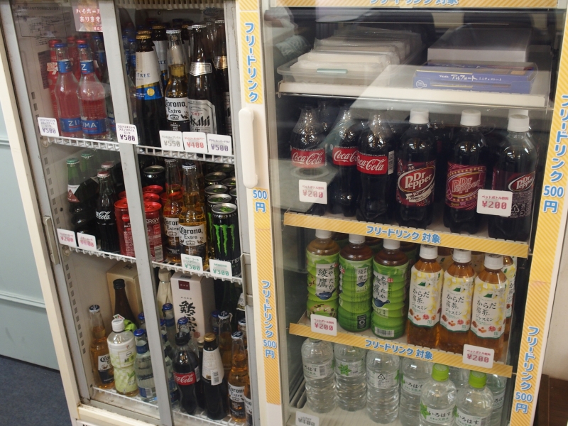 ソフトドリンクからアルコールまで完備。さらにソフトドリンクはフリードリンクがお得です。値段を見てあまりの破格に驚きました。また、写真には写っていませんが、カップラーメンやスナック類も揃っているので、小腹が空いた時にも安心です。