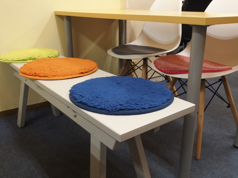 若干薄暗く感じる廊下に比べて店内はかなり広くて明るく、遊ぶためのテーブルやイスが多数設置されています。店内中央の一部には仕切り壁があり、左右が分かれている形に見えます。